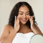 - Espalhe suavemente sobre o rosto e pescoço com toques leves, evitando excessos em uma única área.